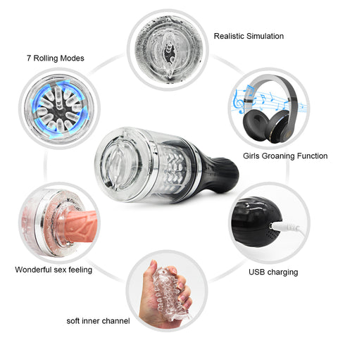 Description 【Male Masturbator with 7 Spinning Modes】This male masturbator cup features a high quality rotating motor and exquisite workmanship, which results in the best rotating male masturbation device on the market....